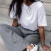 - Elegancki płaszcz: Długi, klasyczny płaszcz o prostym kroju to idealny wybór na chłodniejsze dni. Najlepiej, aby był w neutralnym kolorze – czarnym, szarym lub granatowym, co doda elegancji całej stylizacji.